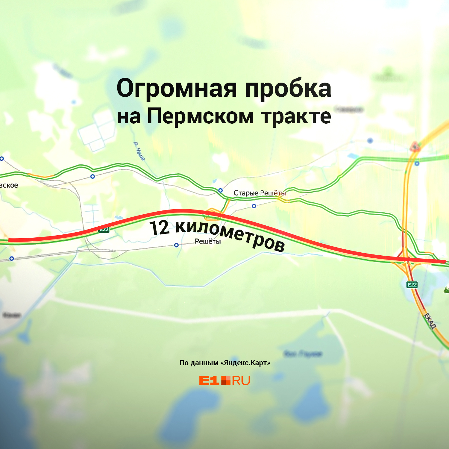 Царь-пробка длиной почти 12 километров образовалась на Пермском тракте, где утром ограничили движение из-за нечищеной дороги. Вереница машин растянулась от ЕКАД до Новоалексеевского. По словам очевидцев, затор во многом образовался из-за транзитных фур, водители которых решили остановиться и переночевать на трассе в связи со сложными погодными условиями. Это сильно затруднило очистку дороги от снега.