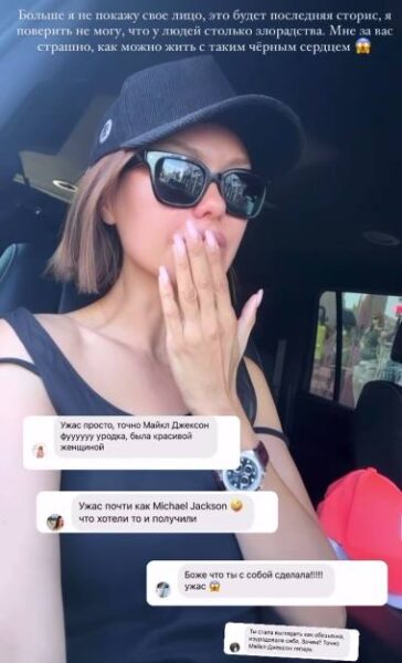 Сдерживая слезы, Виктория Боня решила открыться перед своими поклонниками и подробно рассказать о своей недавней операции. Она уверяет, что не было никакого бартера или скрытой мотивации за ее решением поделиться этим событием с аудиторией. Все, чем она руководствовалась, – это стремление быть честной и откровенной перед своими фолловерами. Однако в ответ Виктория получила неприятные сравнения с Майклом Джексоном и обезьяной. Эти оскорбительные высказывания глубоко задели ее и поколебали ее доверие к своей аудитории.