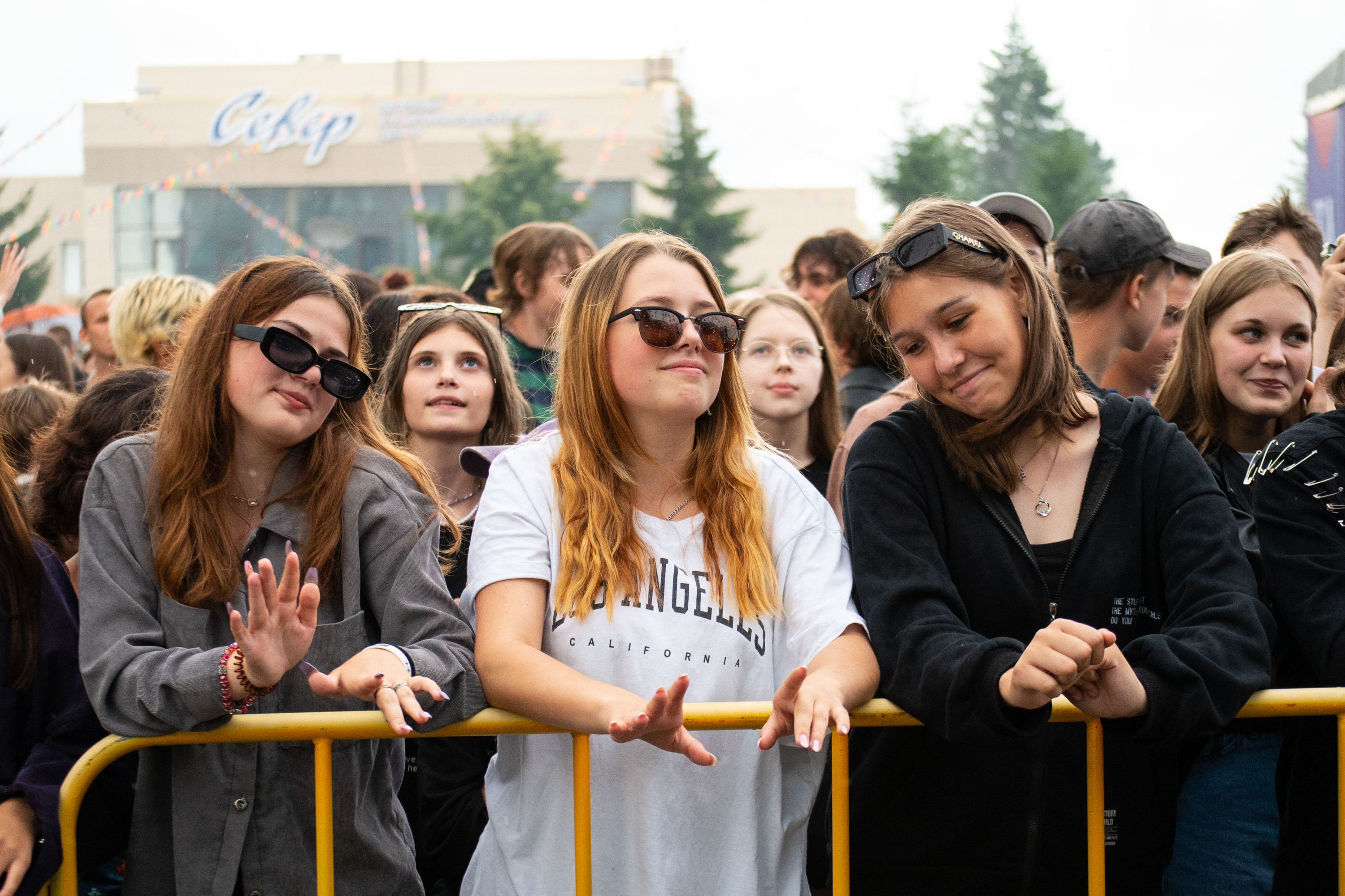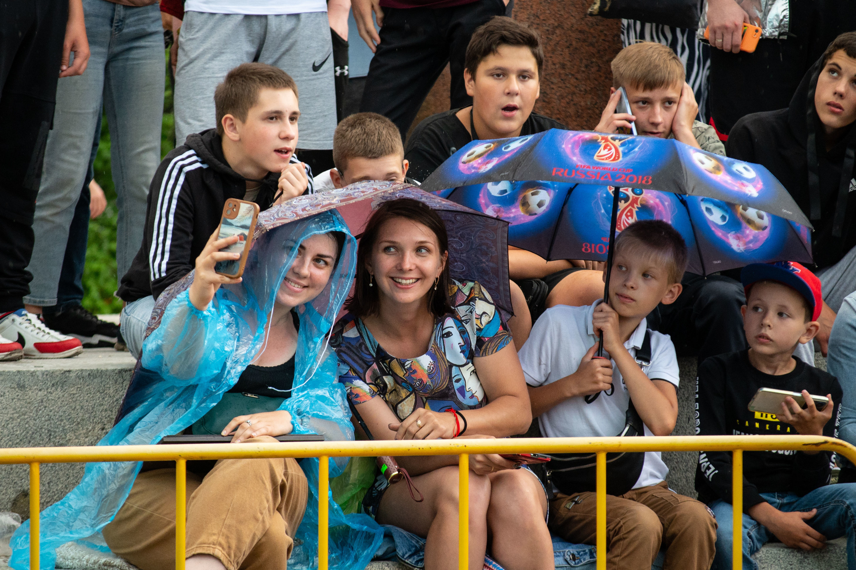 К началу концерта зрители подтянулись к главной сцене, чтобы поприветствовать участников. Начал накрапывать дождик, но гостей это не смущает