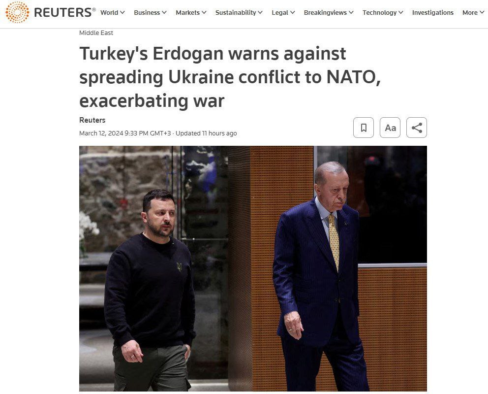 Президент Турции Реджеп Тайип Эрдоган заявил, что следует избегать любых шагов, которые могли бы усугубить войну в Украине и распространить конфликт на НАТО, сообщает Reuters.