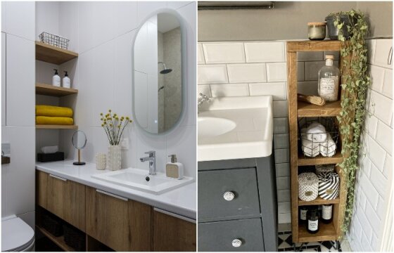 Полки нужны и в зоне ванны, и в зоне раковины