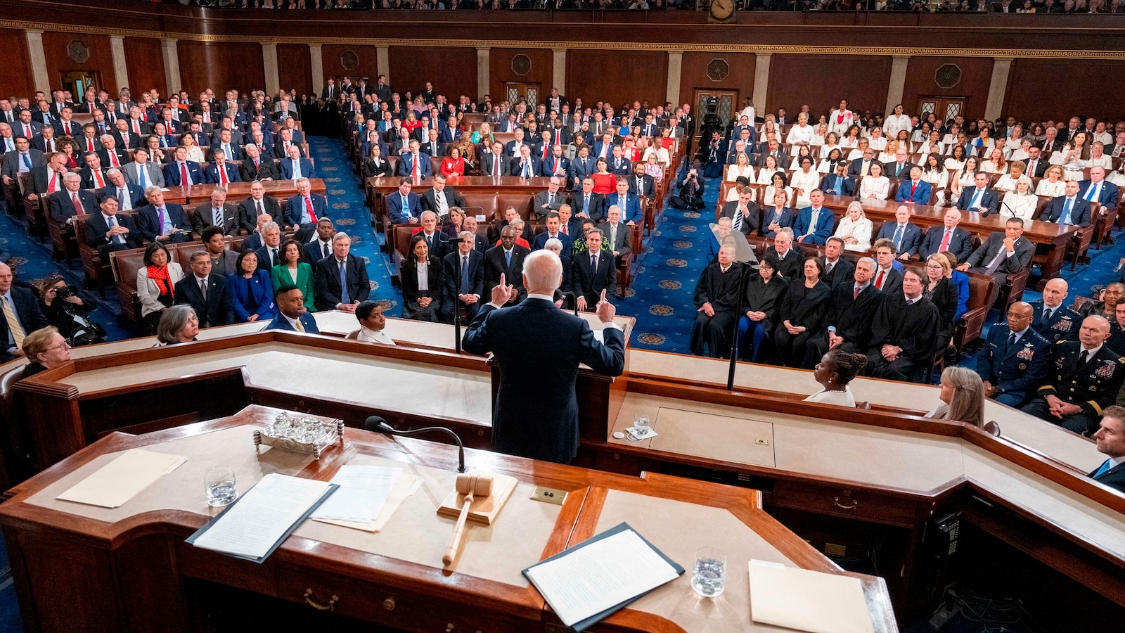Biden also takes aim at justices seated in front row