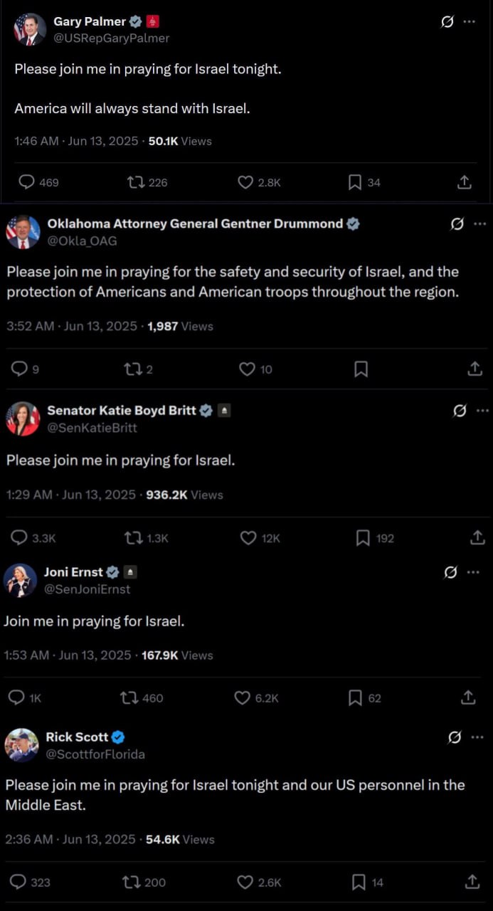 Пока Иран посылает свой четвертый ракетный ответ вчерашним ударам Израиля, американские чиновники разных мастей и политических убеждений призывают людей присоединиться к ним в их «молитве за Израиль».