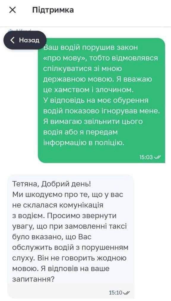 В Житомире националистка пожаловалась на таксиста, который не говорил с ней по-украински и «игнорировал» её замечания. Оказалось, что он глухонемой.