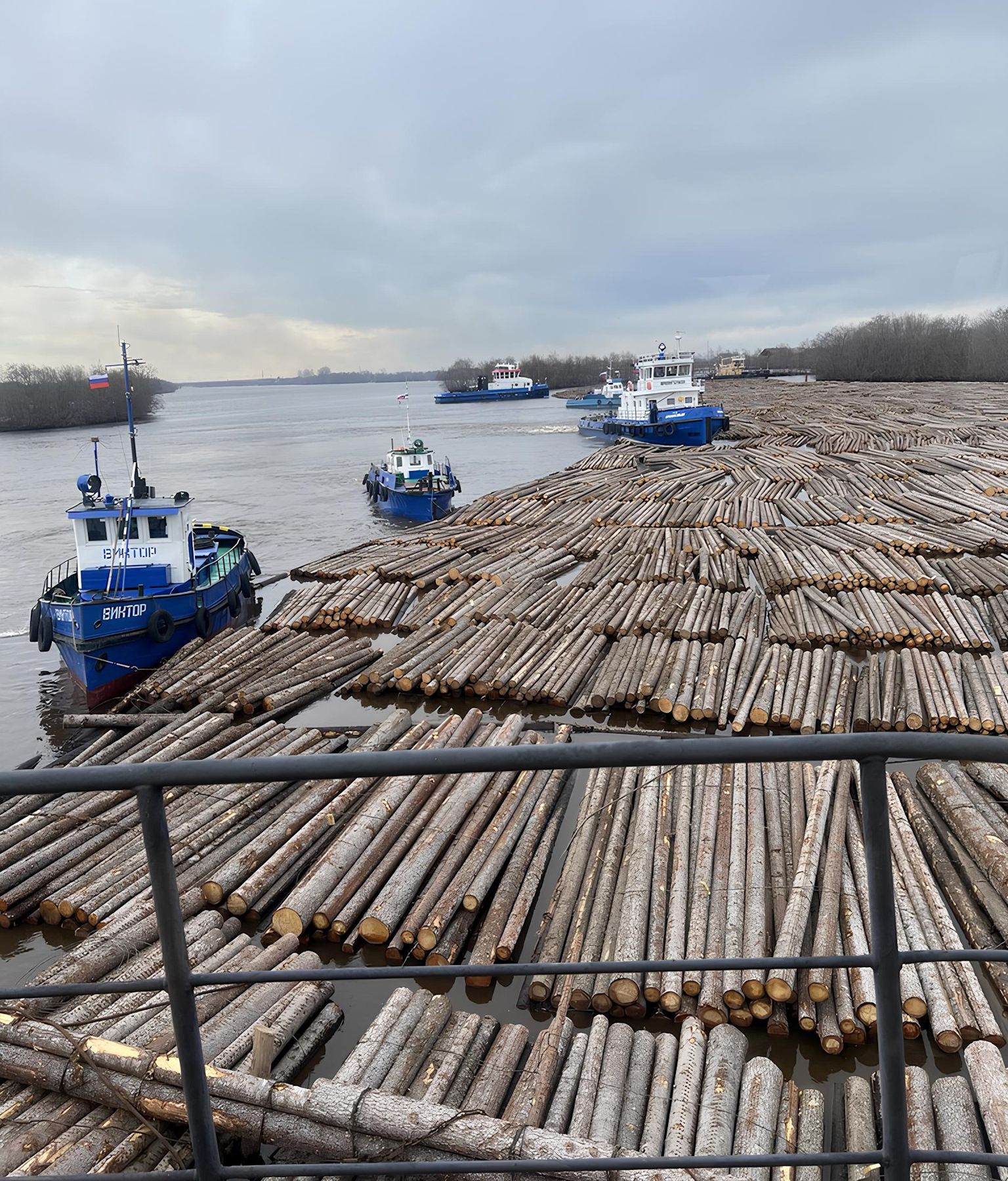 Отмечается, что транспортировка лесовозных грузов в плотах и баржах является одним из ключевых направлений деятельности судоходства региона.