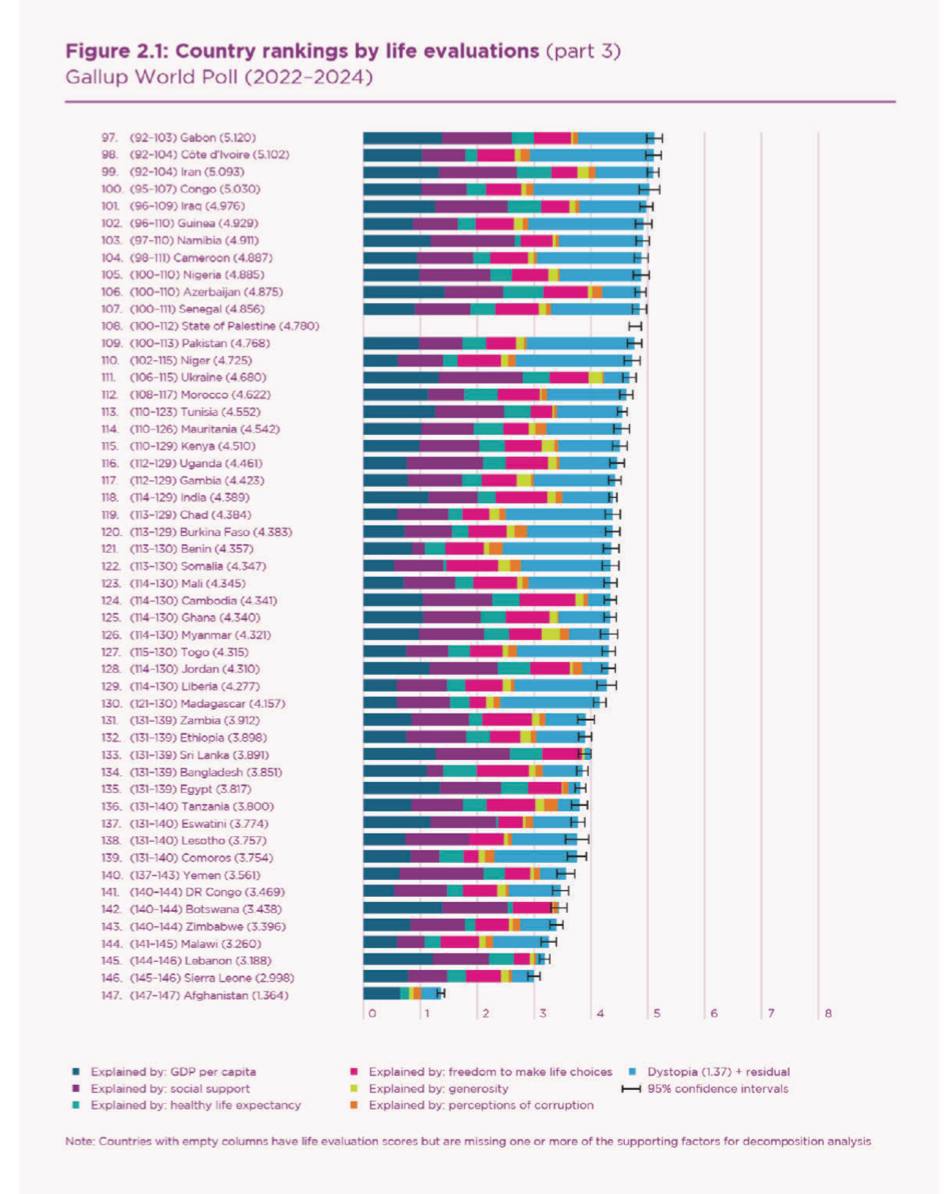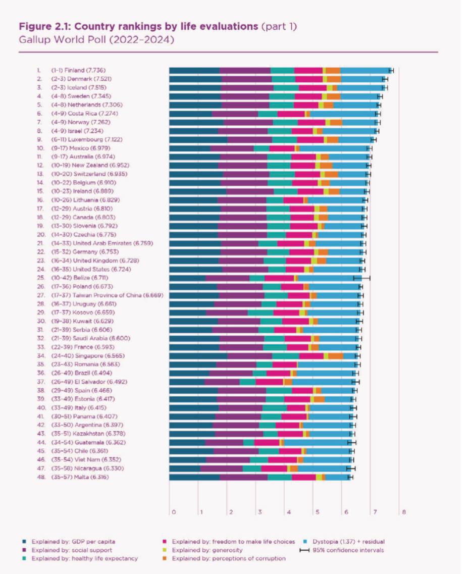 😊Россия на 66 месте в рейтинге счастья среди 147 государств — данные World Happiness Report