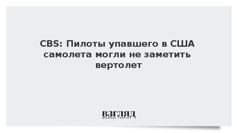 Пилоты пассажирского самолета, разбившегося рядом с Вашингтоном, могли не заметить приближающийся военный вертолет, что стало причиной катастрофы, сообщили эксперты телекомпании CBS.