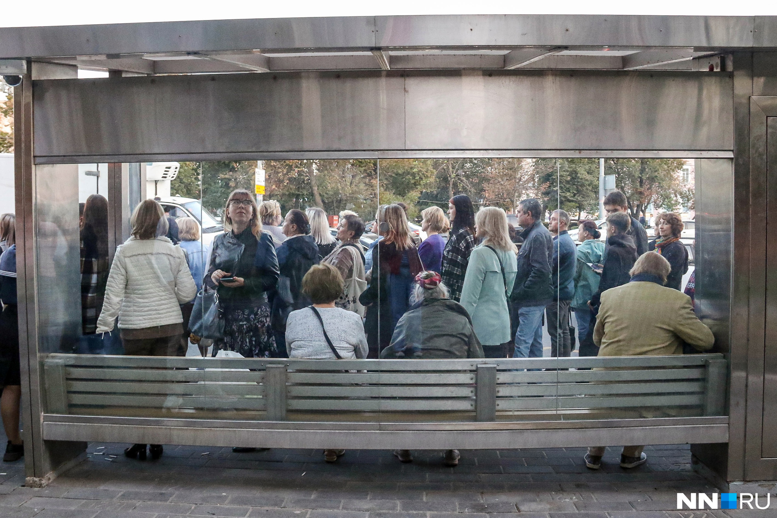 Остальные маршрутки, курсирующие через площадь Минина, приезжали почти по графику, но тоже полностью забитые пассажирами — многие жители были вынуждены оставаться на остановках и ждать удачи в следующем пазике.