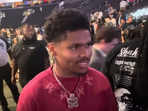 Обладатель титула чемпиона мира по версии WBC в лёгком весе (до 61,2 кг) американец Шакур Стивенсон (22-0, 10 КО) пообщался с местными журналистами после увиденной досрочной победы чемпиона IBF в полусреднем весе (до 66,7 кг) американца Джарона Энниса (31-0, 28 КО) над армянином Давидом Аванесяном (30-4-1, 18 КО).