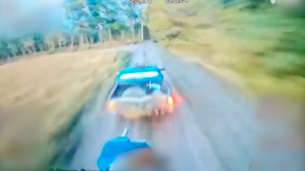 На кадрах, снятых самими ударными беспилотниками, видно, как дроны преследуют украинские автомобили по грунтовым дорогам. Демонстрируются последствия точного удара - пожар и клубы дыма.