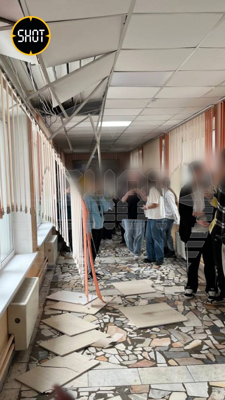 Там также обвалилась часть подвесного потолка — в коридоре. Пострадавших нет.