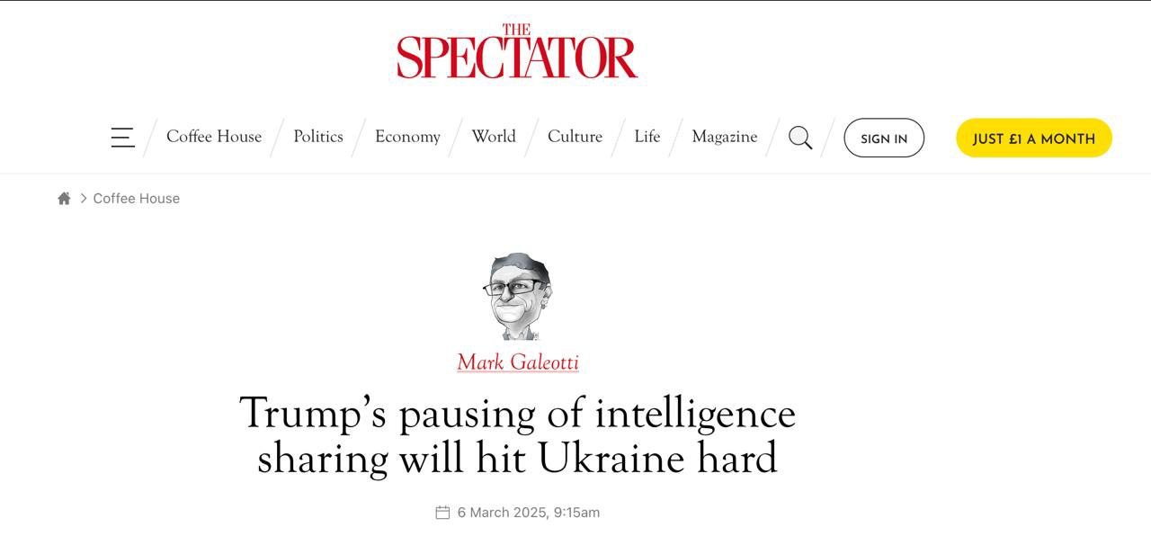 Остановка обмена разведданными со стороны Трампа нанесет серьезный удар по Украине, пишет обозреватель Марк Галеотти для журнала The Spectator.