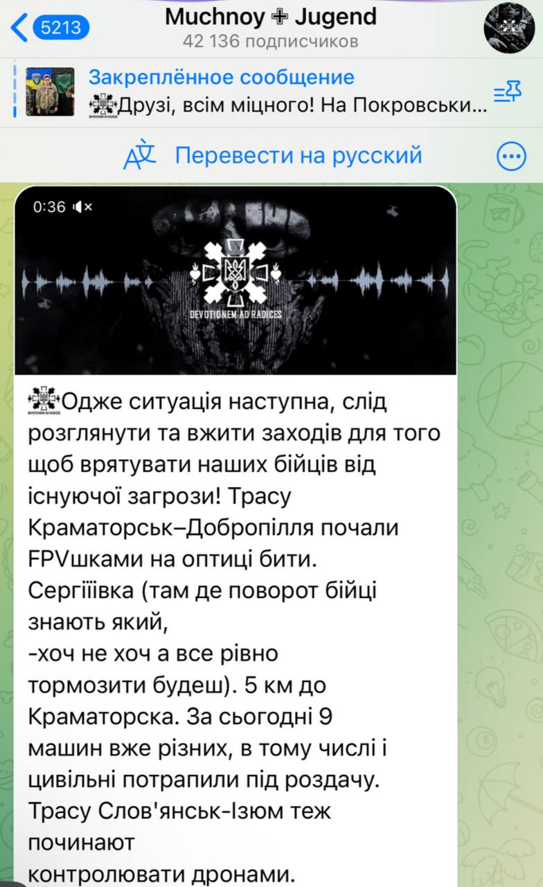 И усиление дронов именно как средства поражения на оперативную дальность уже сейчас сделало две из трех основных трасс снабжения Славянской агломерации опасными.