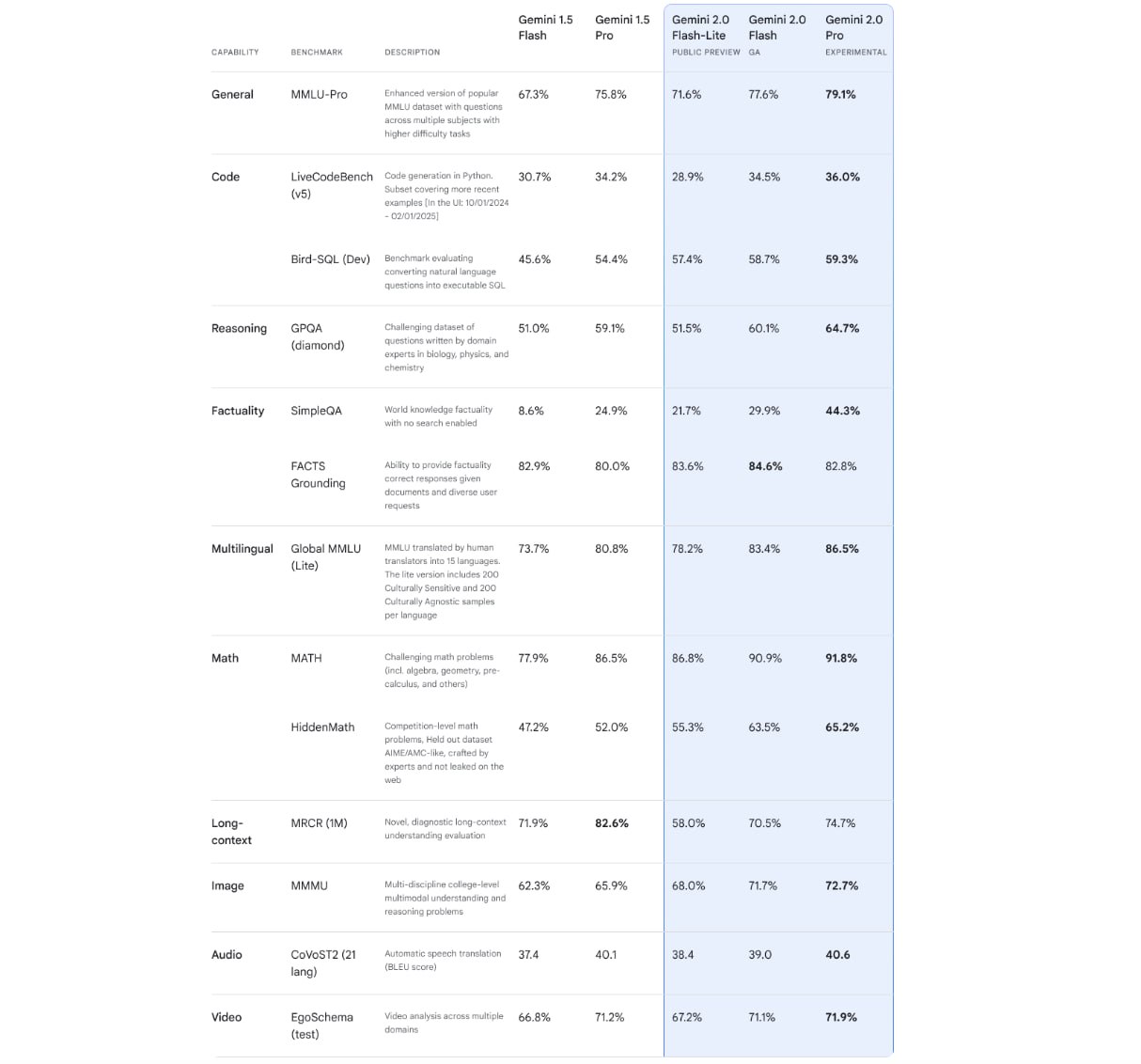 Ожидания были высокие, т.к. бесплатная Gemini 2.0 Flash существенно опережала основную публичную версию Gemini 1.5 PRO, которая интегрирована в платные продукты Gemini Advanced.