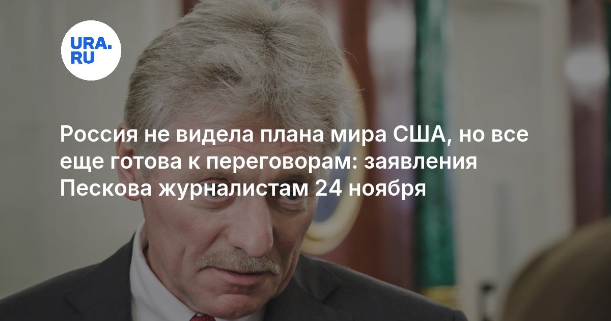 Россия пока не ознакомилась с мирным планом США по Украине. Об этом рассказал пресс-секретарь российского президента Дмитрий Песков, подчеркнув, что переговоров между делегациями стран пока также не планируется. При этом Россия продолжает оставаться открытой к переговорам в целом. О чем еще рассказал журналистам официальный представитель Кремля — в материале URA.RU.