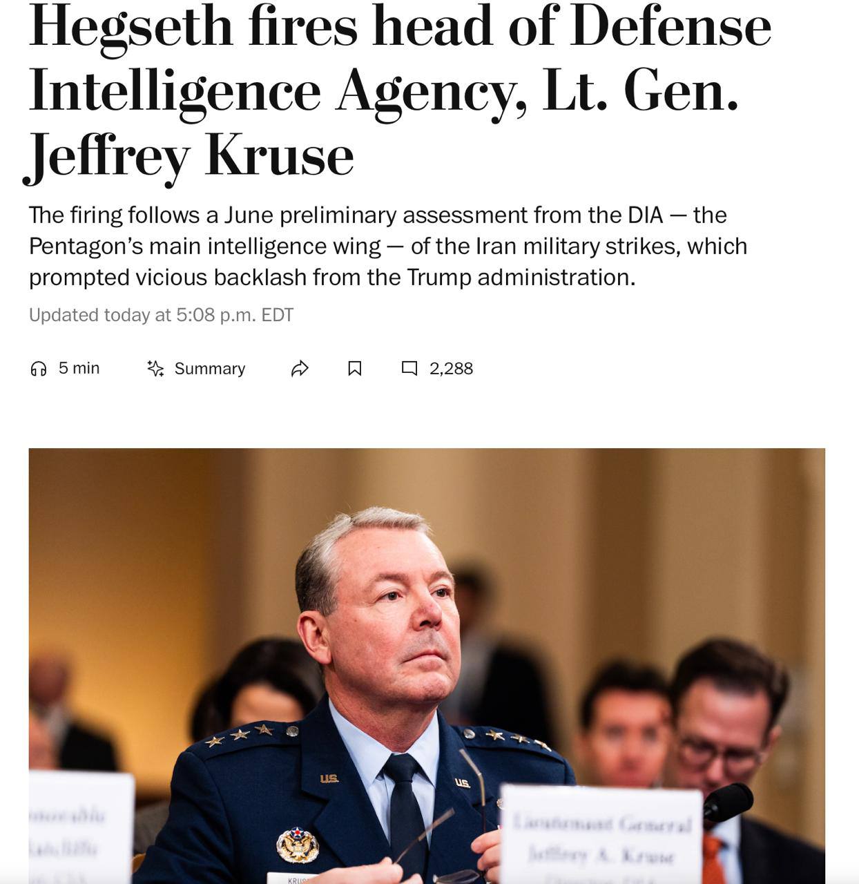 Отставка последовала вскоре после появления доклада DIA, посвящённого июньским ударам США по трём объектам ядерной программы Ирана. Его содержание вызвало недовольство Белого дома, особенно после публикаций CNN и The New York Times.