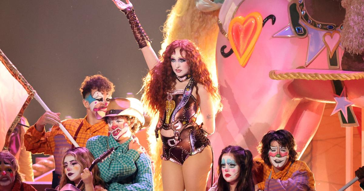 Pink pony club, Good luck, Babe !, Hot to go ! ou encore The subway sorti début août sont dans la besace de Chappell Roan, à mi-chemin entre phénomène pop et créature incandescente sortie d’un conte fantastique. Ses tenues de scène sont pensées dans les moindres détails, du costume au maquillage et perruques: body scintillant de majorette, cosplay de la statue de la Liberté, armure façon Jeanne d’Arc… En 2024 au festival Coachella, aux États-Unis, l’artiste caméléon a fait son entrée avec des ailes géantes de papillon dans le dos. Et au plus intimiste Tiny Desk concert (14 millions de vues sur YouTube), les traces de rouge à lèvres sur ses dents ne sont pas un simple accident.