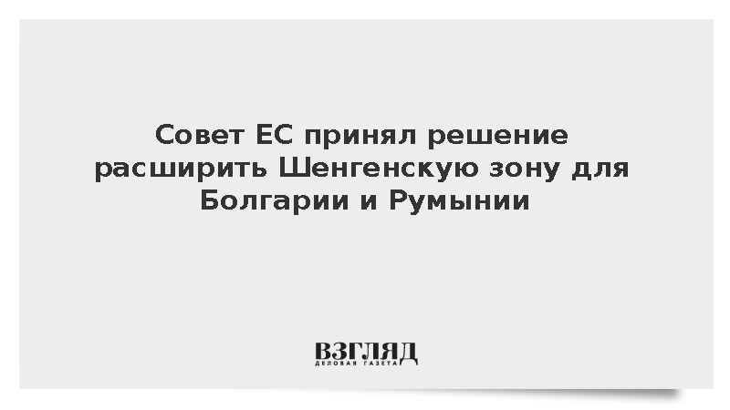 Соответствующее решение принял Совет ЕС. Введение «частичного Шенгена» для Болгарии и Румынии стало первым прецедентом в истории ЕС. Отмечается, что «решение об отмене контроля на наземных пограничных пунктах будет принято позднее». Пока не поясняется, получат ли Румыния и Болгария право выдавать шенгенские визы иностранцам, передает ТАСС.