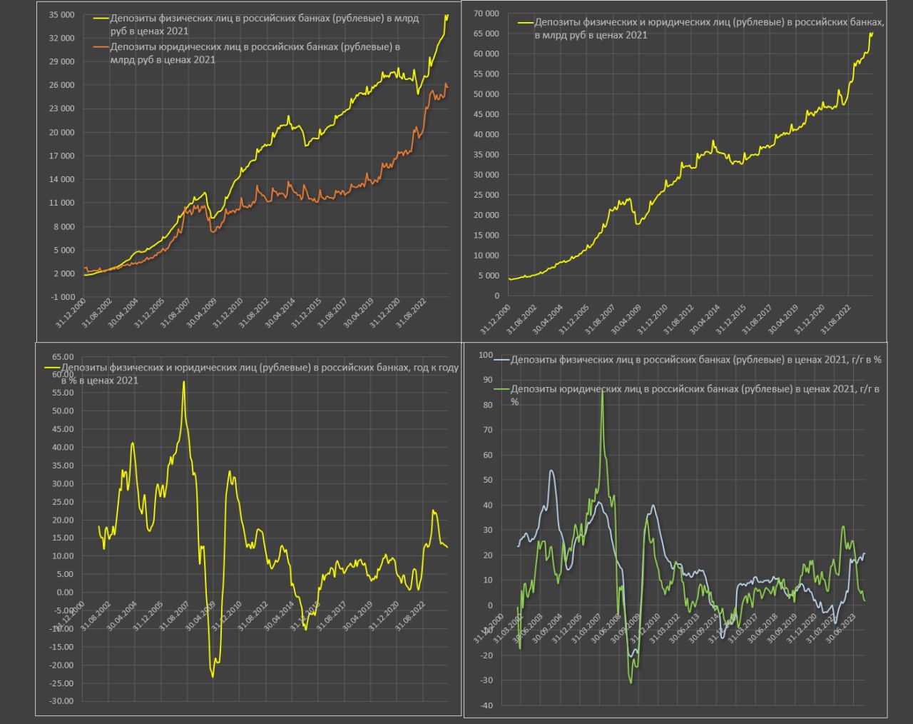 Темп роста М2 в реальном выражении замедлился с 21.4% в июн.23 до 10% и вновь это высокие темпы – лишь во втором полугодии 2020 рост превышал 10%.