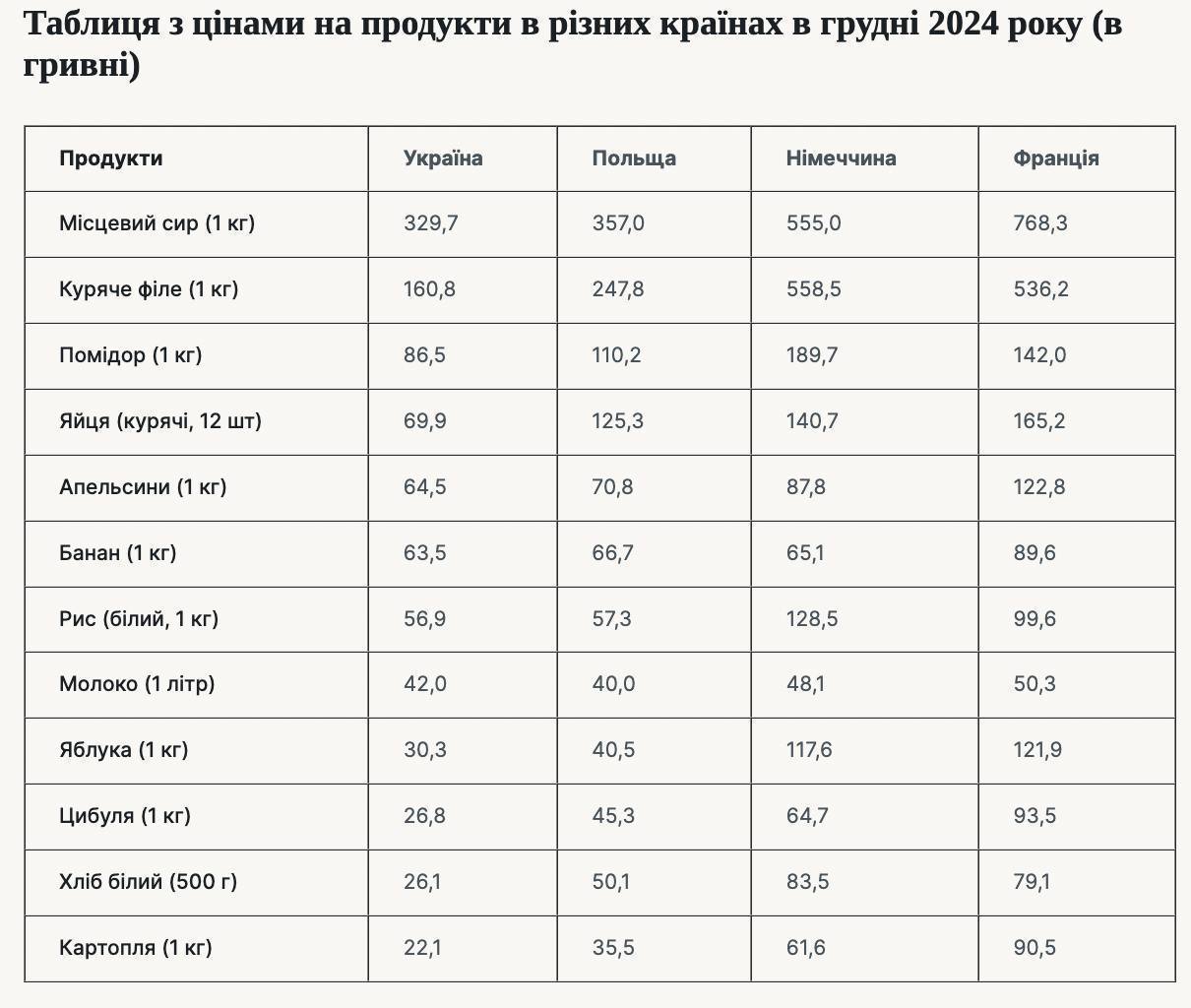 Интересная табличка - сравнение цен на продукты в Украине и Евросоюзе. Пока цены в стране все еще дешевле, чем в ЕС, но постепенно подбираются. А молоко, например, уже дороже, чем в Польше. Только зарплаты в Украине несравнимо ниже, чем в европейских странах.
