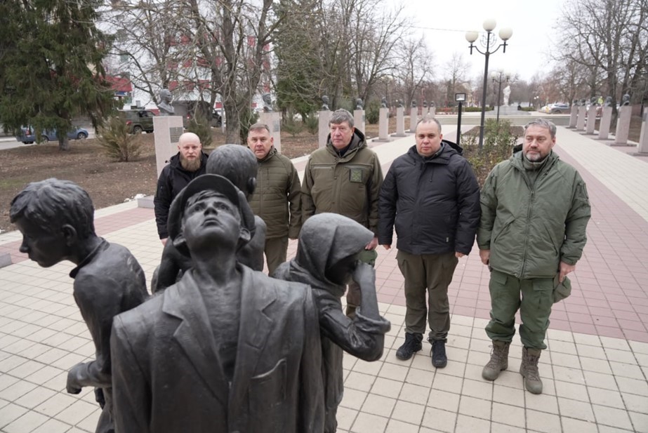 На фото: Спикер и депутаты ЗакСа Петербурга в городе Валуйки во время командировки в зону СВО, Белгородская область, январь 2025 года.