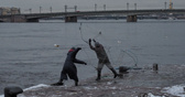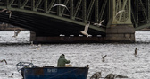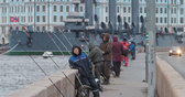 Одни рыбаки встраиваются с удочками вдоль набережной напротив крейсера «Аврора», другие гоняют на лодке в акватории Невы неподалеку от Петропавловской крепости и стрелки Васильевского острова. Большинство все же ловят рыбу с берега, забрасывая в воду сети-пауки.