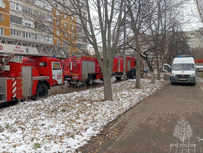 О пожаре стало известно около 12 часов дня. На место стягиваются спасатели. По данным ведомства, на месте сотрудники МЧС установили, что в общем коридоре загорелся распределительный щиток, а в подъезде создалось сильное задымление.