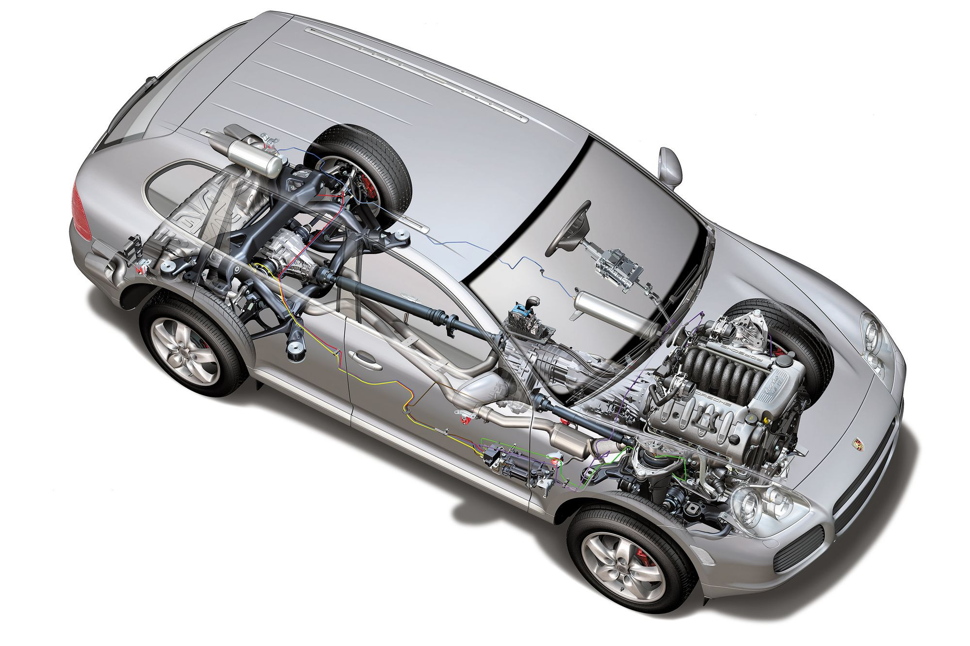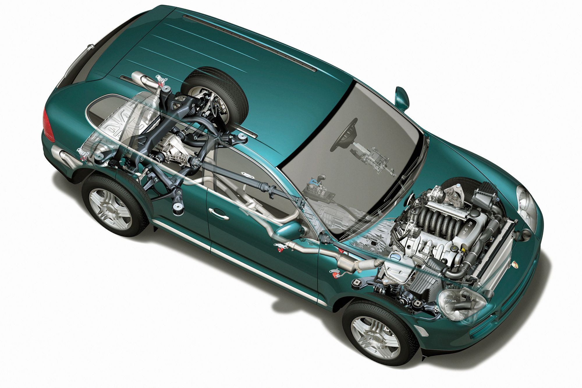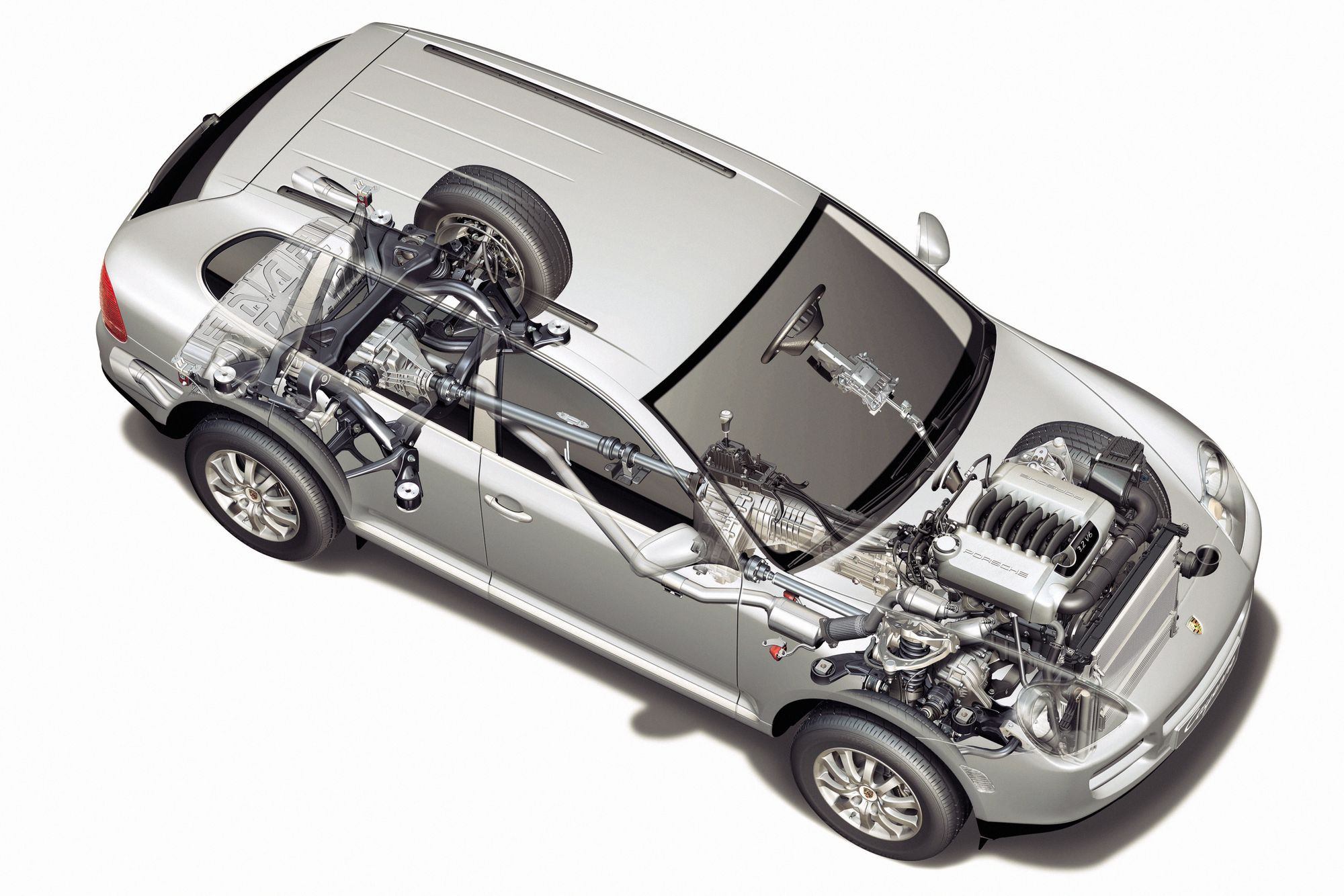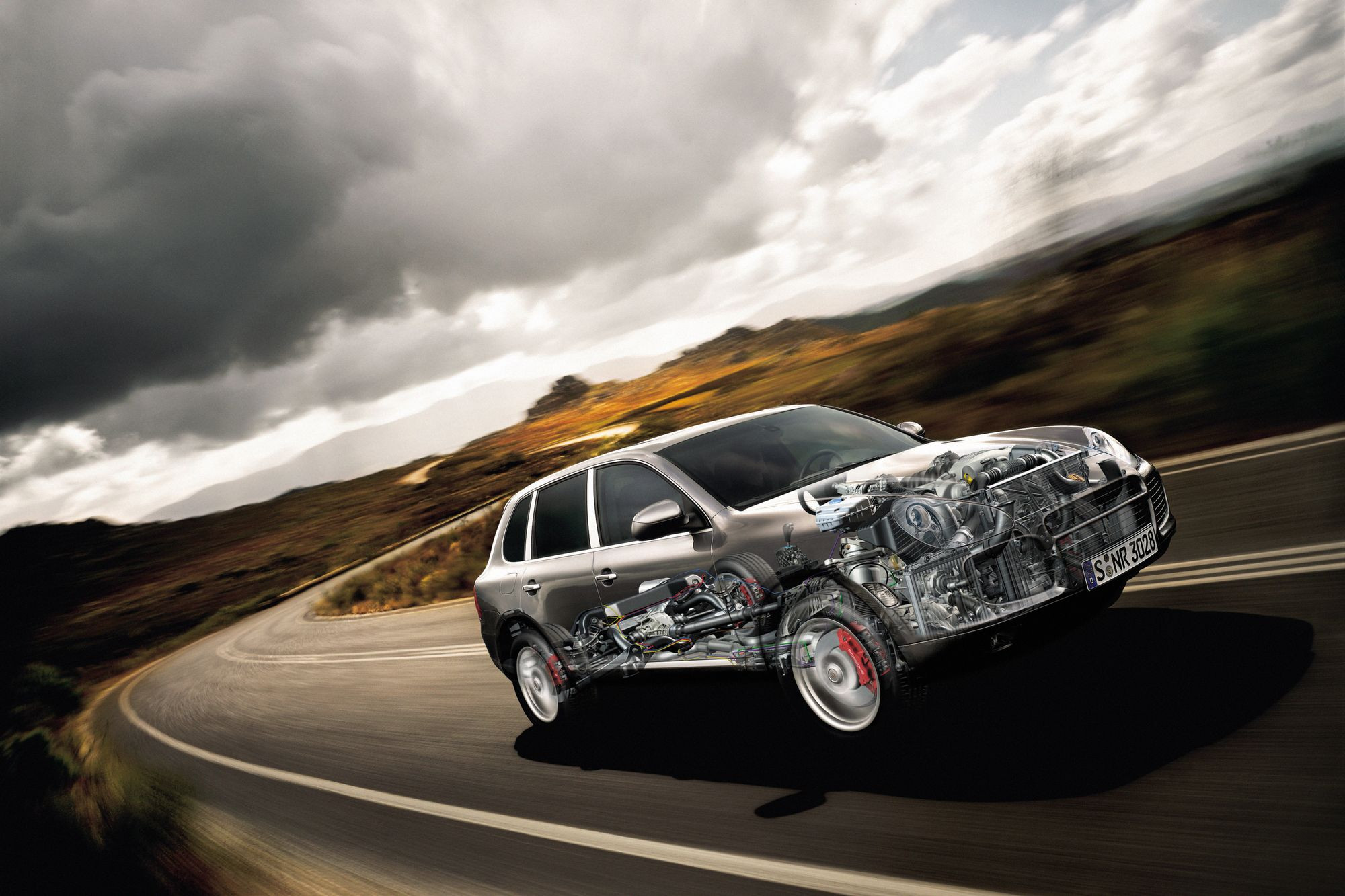В Porsche подошли к вопросу серьезно, открыв дополнительный офис и построив в Лейпциге новый завод с производственной мощностью около 20 тысяч автомобилей. Не секрет, что Type 9PA (955/957), известный как Porsche Cayenne первого поколения, имеет много общего с Touareg, но при этом остается самим собой – узнаваемым автомобилем с яркой харизмой. Volkswagen в этом проекте отвечал за разработку и компоновку полноприводной трансмиссии, а инженеры Porsche занимались тем, что они умели лучше всех остальных – подвеской, устойчивостью и управляемостью. Задача перед ними стояла сложная: довести ходовые качества 2,5-тонной машины до уровня породистого спортивного автомобиля. А сделать это с учётом серьёзной снаряжённой массы и высоко расположенного центра тяжести было совсем непросто. Инженерам пришлось тщательно поработать над жёсткостью кузова, установить полностью независимые подвески с византийским хитросплетением рычагов на мощные подрамники и предусмотреть использование пневматических упругих элементов с возможностью регулировки дорожного просвета для версий Cayenne Turbo / Turbo S.