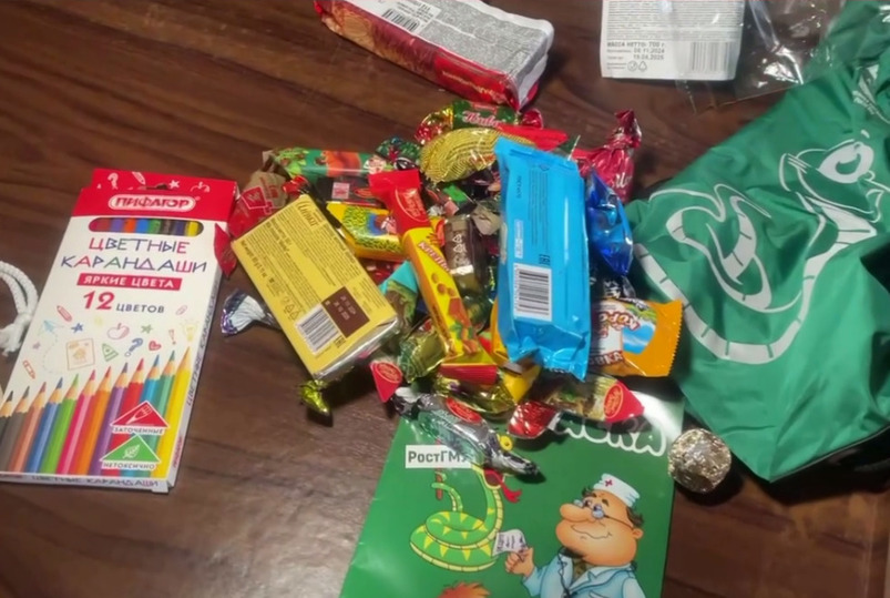 По словам Максима Плетнева, сотрудника РостГМУ, руководителя отдела по взаимодействию с субъектами, принятыми в состав РФ, их вуз выделил 100 подарков для детей сотрудников медучреждений Херсонской области. Это и конфеты, и печенье, и шоколад, и раскраска с карандашами, и даже игра. Организовала это всё профсоюзная организация в составе университета.