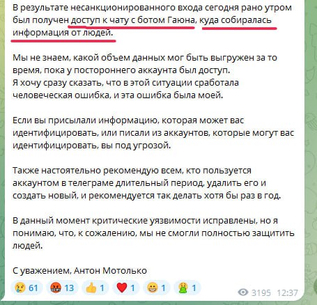Сейчас в руках силовиков данные обо всех стукачах (белорусских, российских и украинских), админах "дружественных" ресурсов и внутренние рабочие переписки.