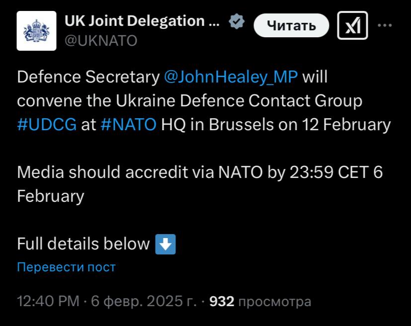 Следующая встреча «Рамштайн» пройдет под председательством Великобритании, а не США, — объединенная делегация Великобритании при НАТО