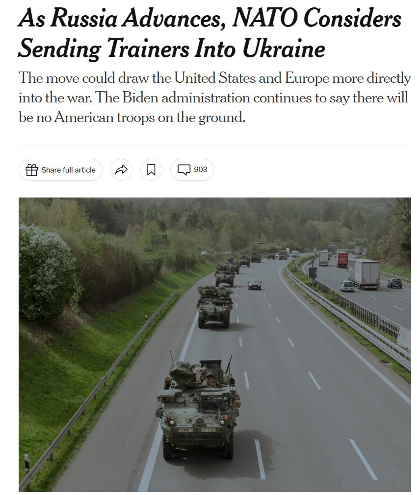 В НАТО рассматривают возможность отправки на Украину инструкторов для обучения ВСУ. Но в администрации Байдена против, поскольку это может вовлечь США и Европу в войну, пишет New York Times.