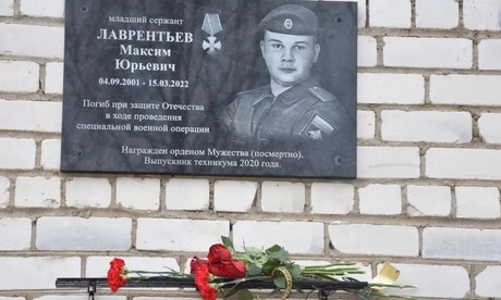 Мемориальная доска в честь Максима Лаврентьева, погибшего в ходе специальной военной операции, появилась в посёлке Сазоново.