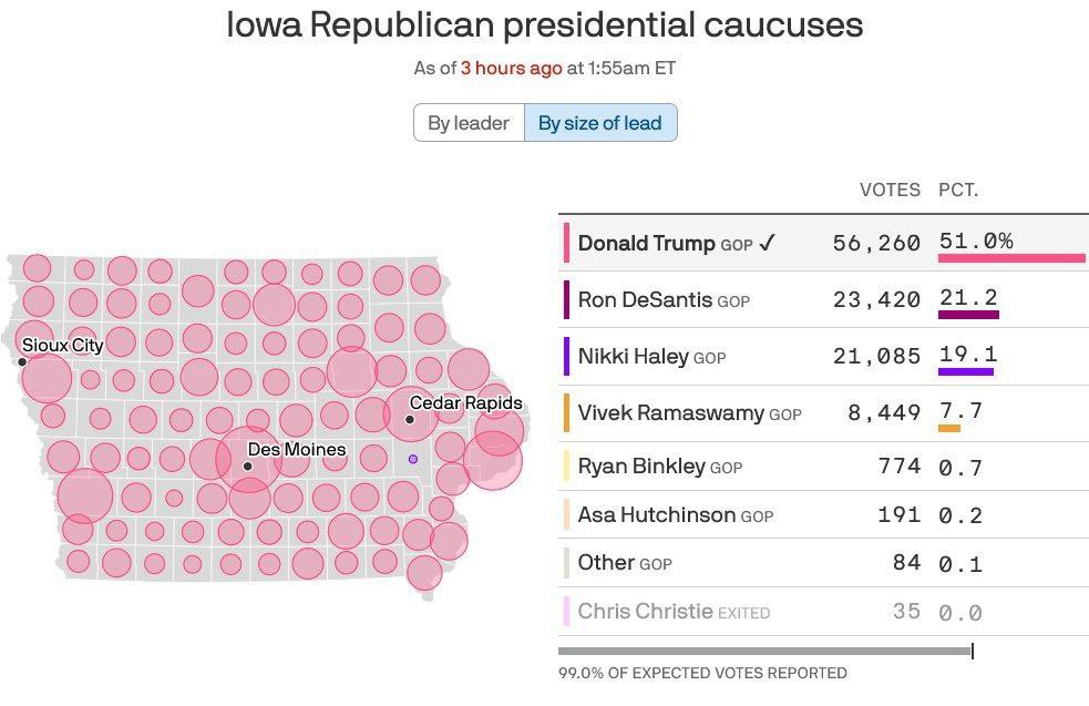 И всё же, после окончательного подсчёта голосов, в одном из 99 округов Айовы победил
