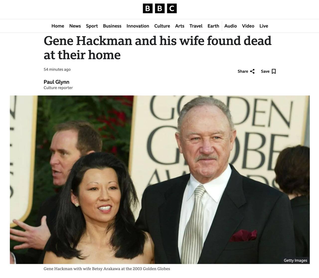 Лауреат двух премий «Оскар», он получил премии «Оскар» за работу в фильмах «Французский связной» и «Непрощенный», голливудский актер Джин Хэкмен найден мертвым вместе с супругой и собакой в своем доме, сообщает ВВС со ссылкой на полицию. Хэкмену было 95 лет, а его жене — 64 года. Предварительно, это не было убийство. Получается, это была добровольная эвтаназия. Ушли вместе. Олег Царёв. Подписаться.