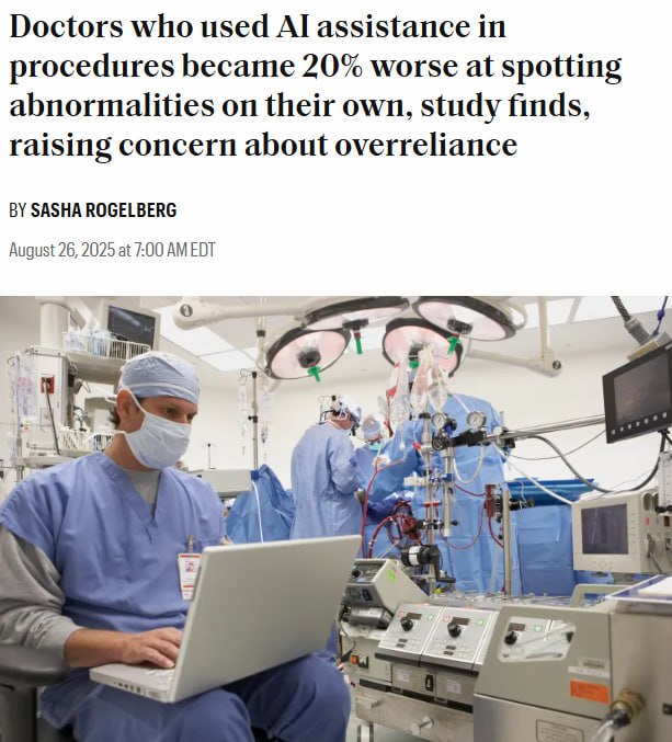 Нейросети делают врачей ТУПЕЕ — исследователи выяснили, что всего пара месяцев работы с ИИ снижают эффективность врачей на 20%.
