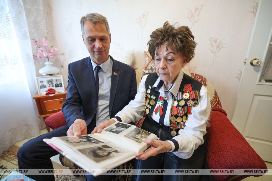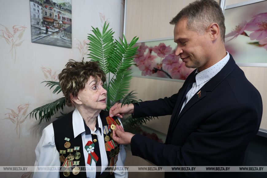 В преддверии празднования 80-летия Победы советского народа в Великой Отечественной войне Светлану Шевченко поздравили с наступающим Днем Победы. Глава администрации Октябрьского района Витебска Владимир Белевич вручил ей цветы и юбилейную медаль, а представители профсоюзов и соцзащиты подарили сувениры и полезные в хозяйстве вещи. "Вы меня очень растрогали, - едва сдерживая слезы, поблагодарила гостей витебчанка. - Я стараюсь всегда держать себя в форме, быть оптимисткой, и это мне помогает не унывать".