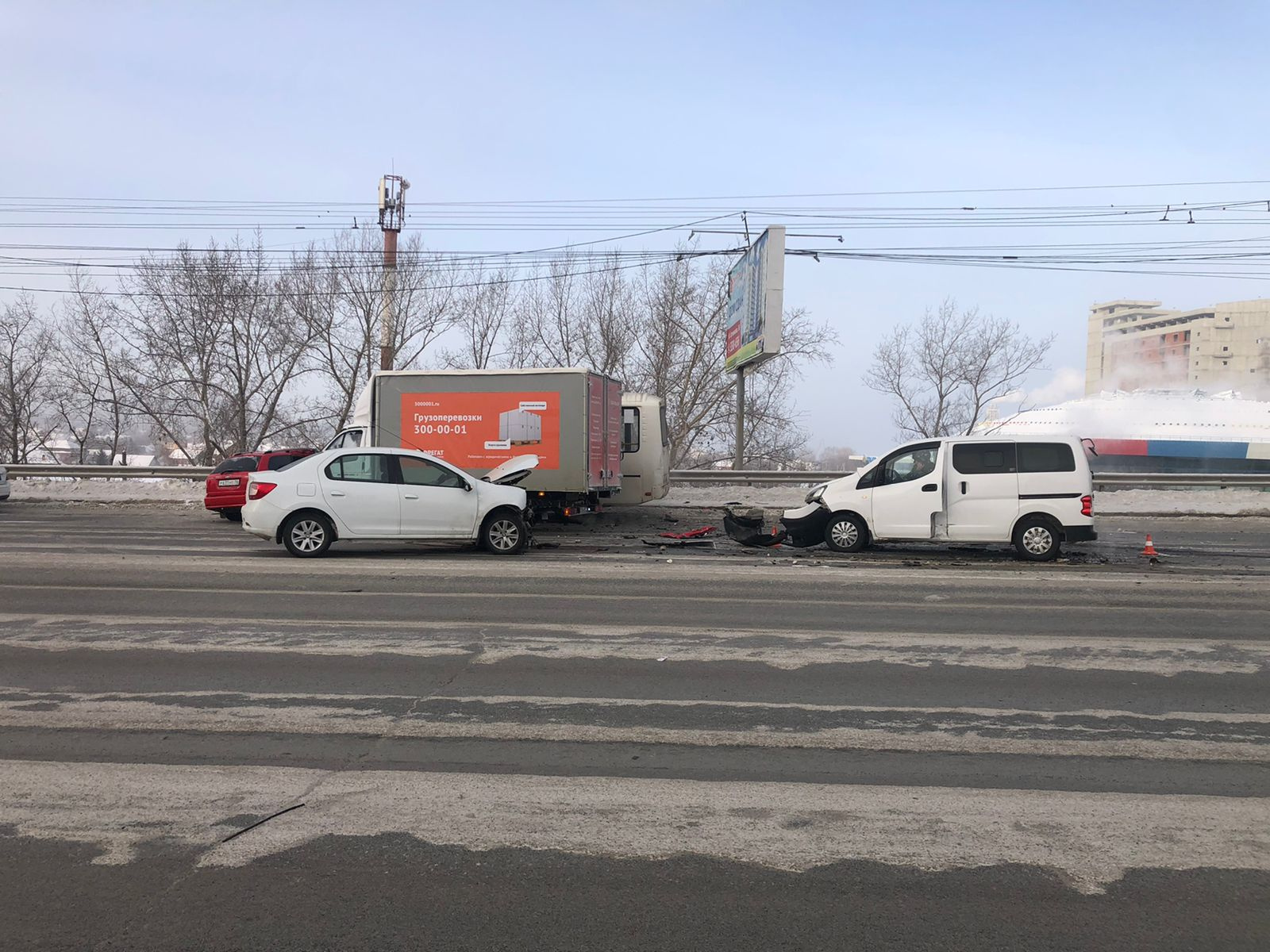 Одного водителя увезли в больницу после столкновения пяти автомобилей на Димитровском мосту. Новосибирцы считают, что причина аварий на участке — снежная колея.