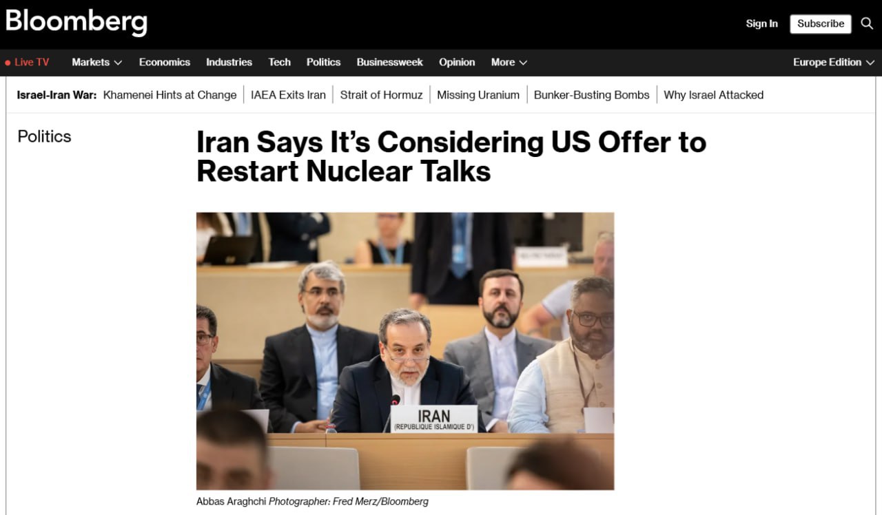 ⚡️Иран рассматривает предложение США о возобновлении переговоров по ядерной программе (c) глава МИД Ирана Аббас Аракчи