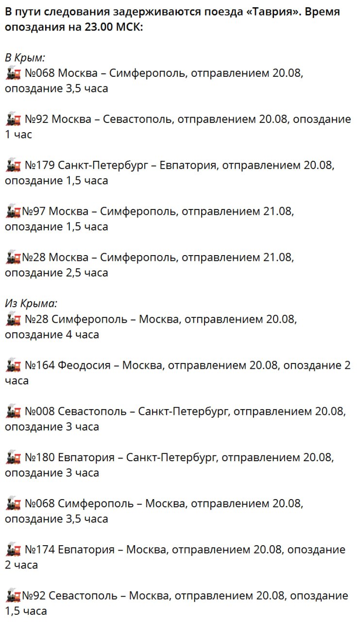 ❗️12 пассажирских поездов «Таврия» по направлению в Крым и из него задерживаются