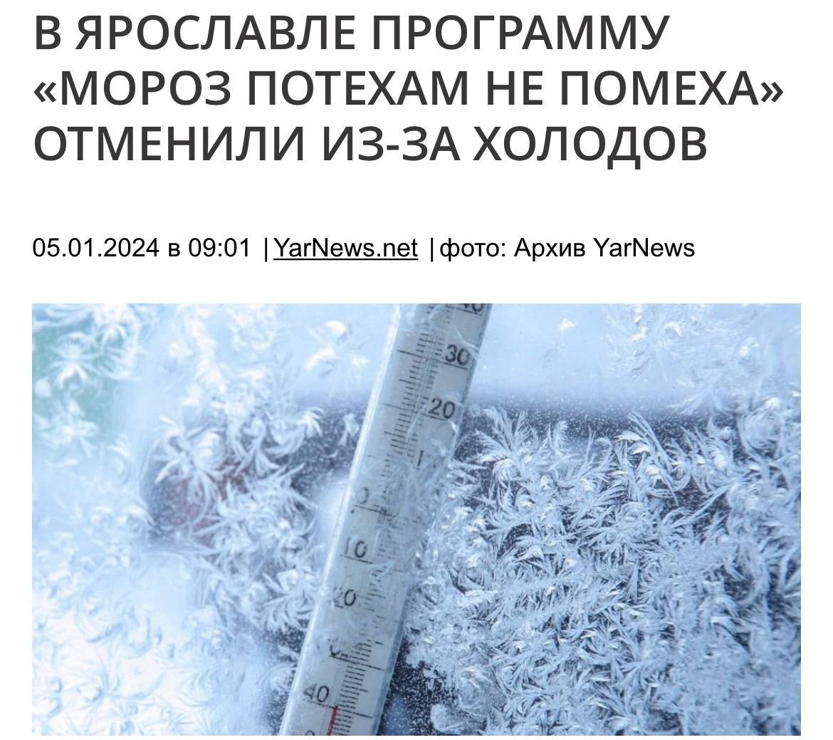 Анекдот дня: в Ярославле мероприятие «Мороз потехам не помеха» отменили из-за... холодов и морозов