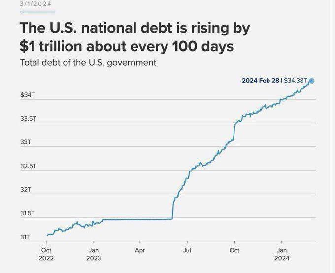 Госдолг США растет со скоростью 1 триллион долларов каждые 100 дней. Возвращать их никто не собирается. Потому план такой же как 80 лет назад. США будут воевать руками ЕС с Россией.