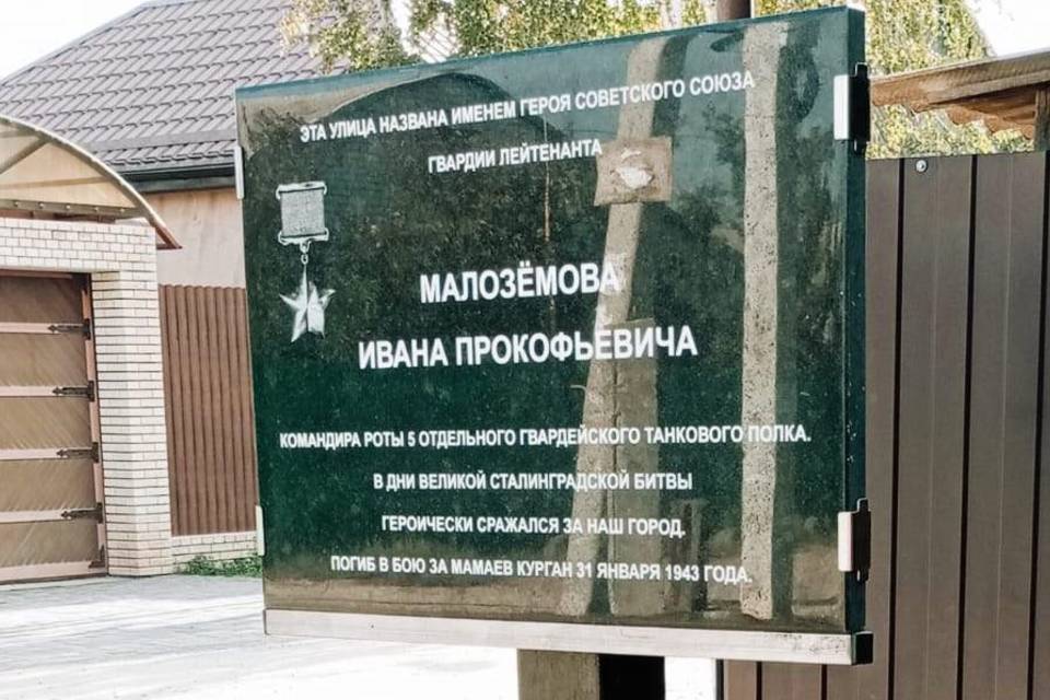 - 31 января 2023 года в Белозерске Вологодской области отметили 80 лет со дня подвига нашего земляка, Ивана Прокофьевича Малоземова, - рассказал журналистам издания Владимир Полянский. - Он погиб за два дня до капитуляции фашистских войск под Сталинградом. Торжественные мероприятия прошли в школе №1, которая носит его имя. Готовясь по случаю дня подвига Ивана Малоземова к поездке в Волгоград, я пересмотрел все имеющиеся у меня материалы, связанные с именем героя. Зная, что в Волгограде есть улица Малоземова, я обратил на нее пристальное внимание. В интернете мне открылась фотография мемориальной доски, установленной в честь Ивана Прокофьевича. На снимке я увидел, что она требует ремонта, а как потом выяснил лично - замены.