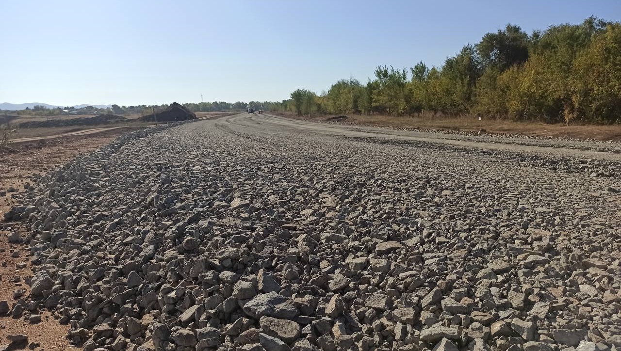 Сейчас завершается разработка грунта, дорожники укладывают щебень. Уже сделана половина от запланированных работ.