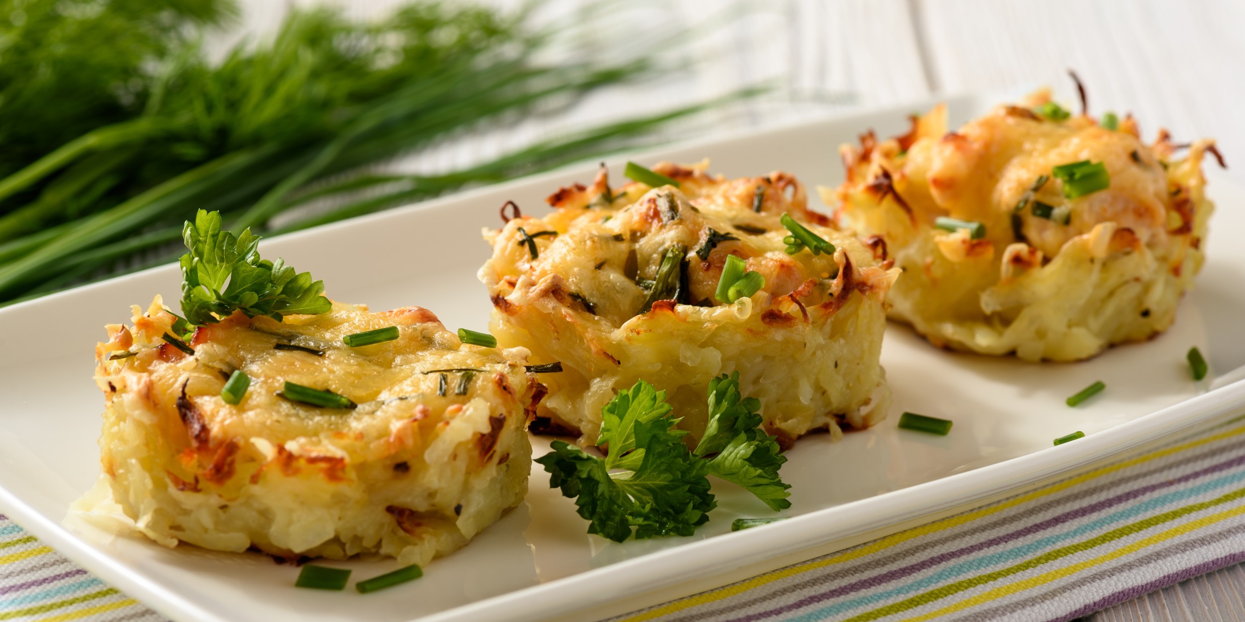 Форму для кексов смажьте маслом. В каждую ячейку выложите картофельную массу, сформировав бортики.