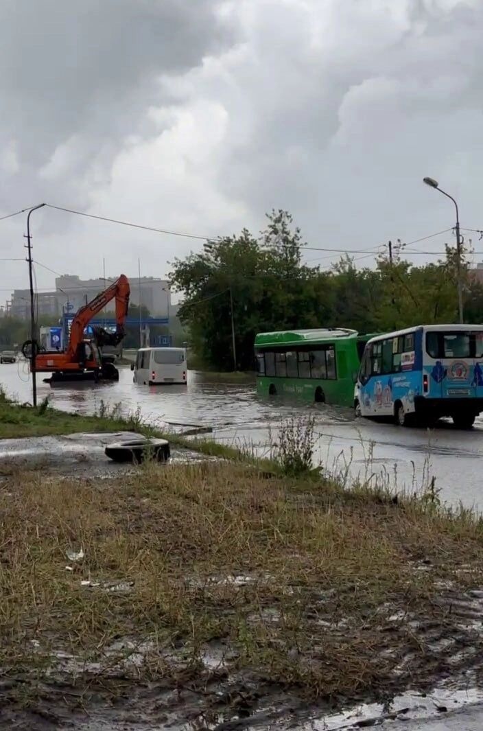 Множеством других шокирующих кадров сибирски делятся в социальных сетях. Пассажиры одного автобуса в МЖК Восточном столкнулись с отказом водителя ехать дальше — улицу затопило настолько, что проехать не удавалось даже легковым автомобилям, поэтому водитель не захотел идти на риск.