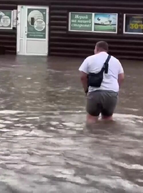 На улице Волочаевской пешеходы переходят улицу вброд — на одном из видео, опубликованном в социальных сетях видно, что вода достала уровня выше колен взрослого мужчины.