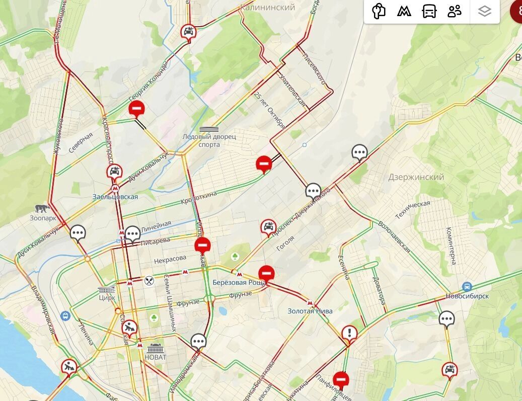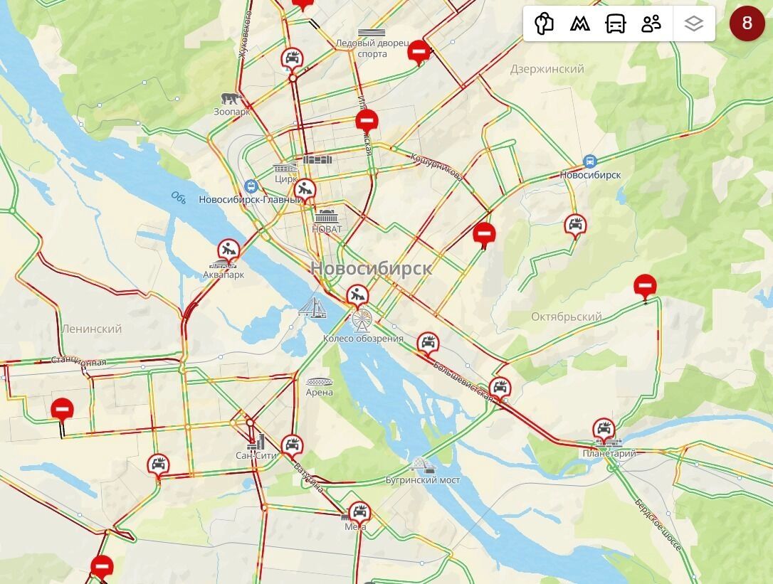 Движение в городе остановилось: на дорогах фиксируются массовые пробки в 8 баллов.