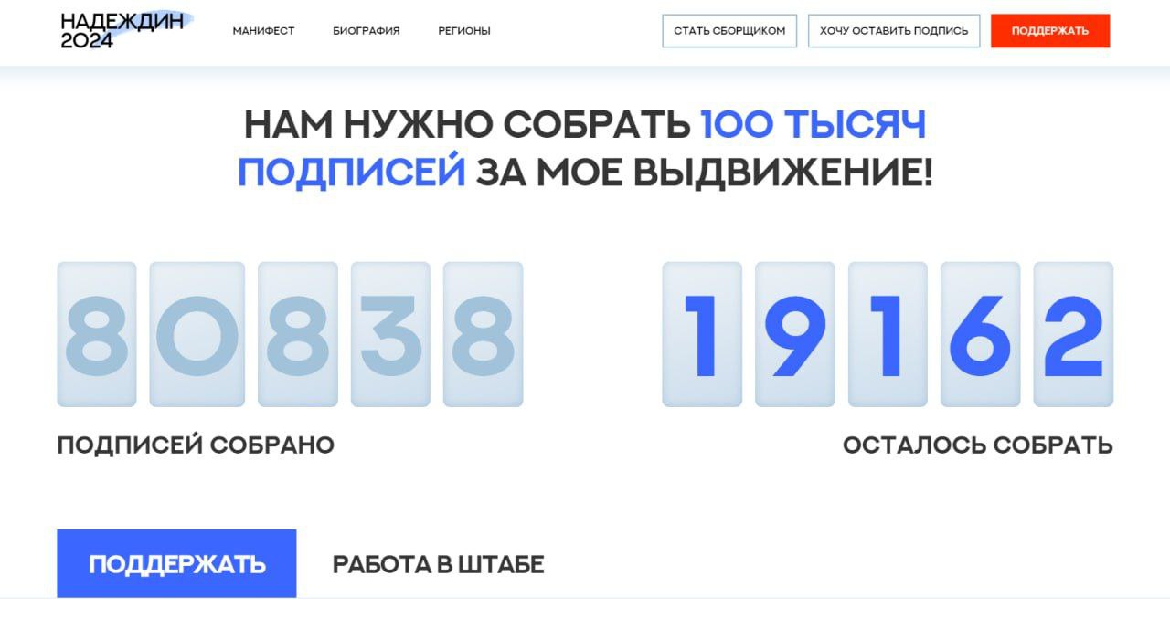 ΠΠΎΠΌΠΌΠ΅Π½ΡΠ°ΡΠΈΠ΅Π² Π² ΠΎΡΠΈΡΠΈΠ°Π»ΡΠ½ΠΎΠΌ ΠΊΠ°Π½Π°Π»Π΅ ΠΊΠ°Π½Π΄ΠΈΠ΄Π°ΡΠ° ΠΏΠΎΠΊΠ° Π½Π΅Ρ. ΠΠ΅ΡΡΠΈΠΈ Π΄Π²Π΅ β Π»ΠΈΠ±ΠΎ ΡΠ°ΠΉΡ ΡΠ½ΠΎΠ²Π° Π²Π·Π»ΠΎΠΌΠ°Π»ΠΈ Ρ ΡΠ΅Π»ΡΡ ΠΏΠΎΡΠ΅ΡΡΡ ΠΏΠ°Π½ΠΈΠΊΡ, Π»ΠΈΠ±ΠΎ ΠΊΠΎΠΌΠ°Π½Π΄Π° ΠΠ°Π΄Π΅ΠΆΠ΄ΠΈΠ½Π° ΠΏΠΎΠ½ΡΠ»Π°, ΡΡΠΎ ΠΌΠΈΠ½ΠΈΠΌΡΠΌ ΡΠ΅ΡΠ²Π΅ΡΡΡ ΡΠΎΠ±ΡΠ°Π½Π½ΡΡ ΠΏΠΎΠ΄ΠΏΠΈΡΠ΅ΠΉ Π½ΠΈΠΊΡΠ΄Π° Π½Π΅ Π³ΠΎΠ΄ΡΡΡΡ ΠΏΠΎ ΠΊΠ°ΡΠ΅ΡΡΠ²Ρ.