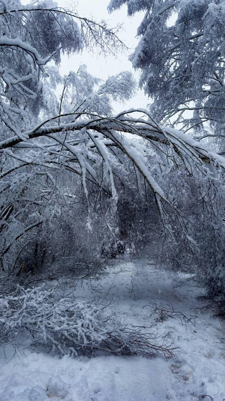 Выпало много мокрого снега. Деревья не выдерживают и падают на линии электропередачи.